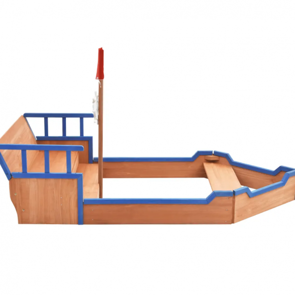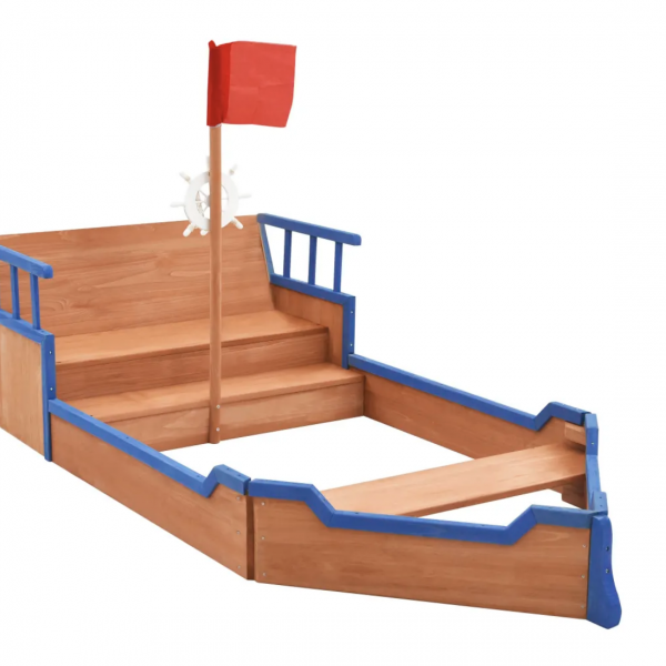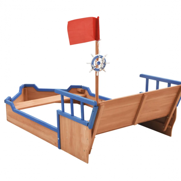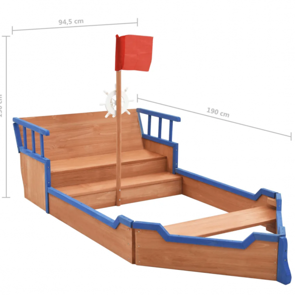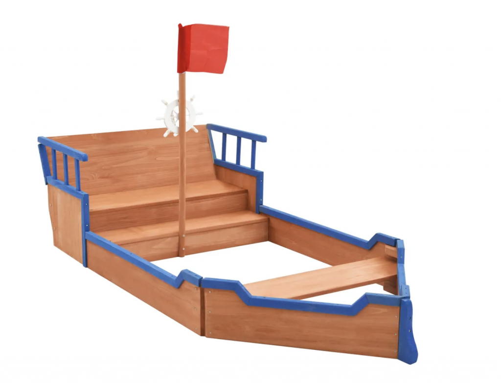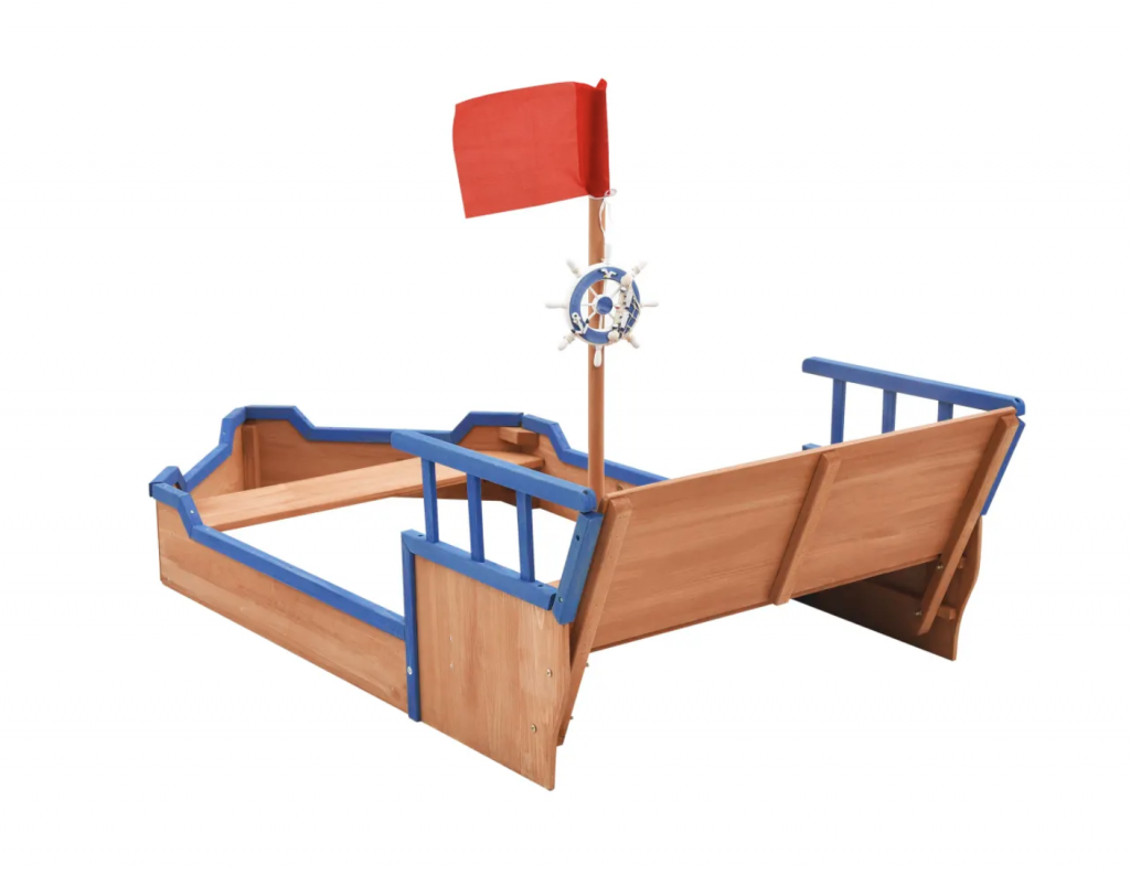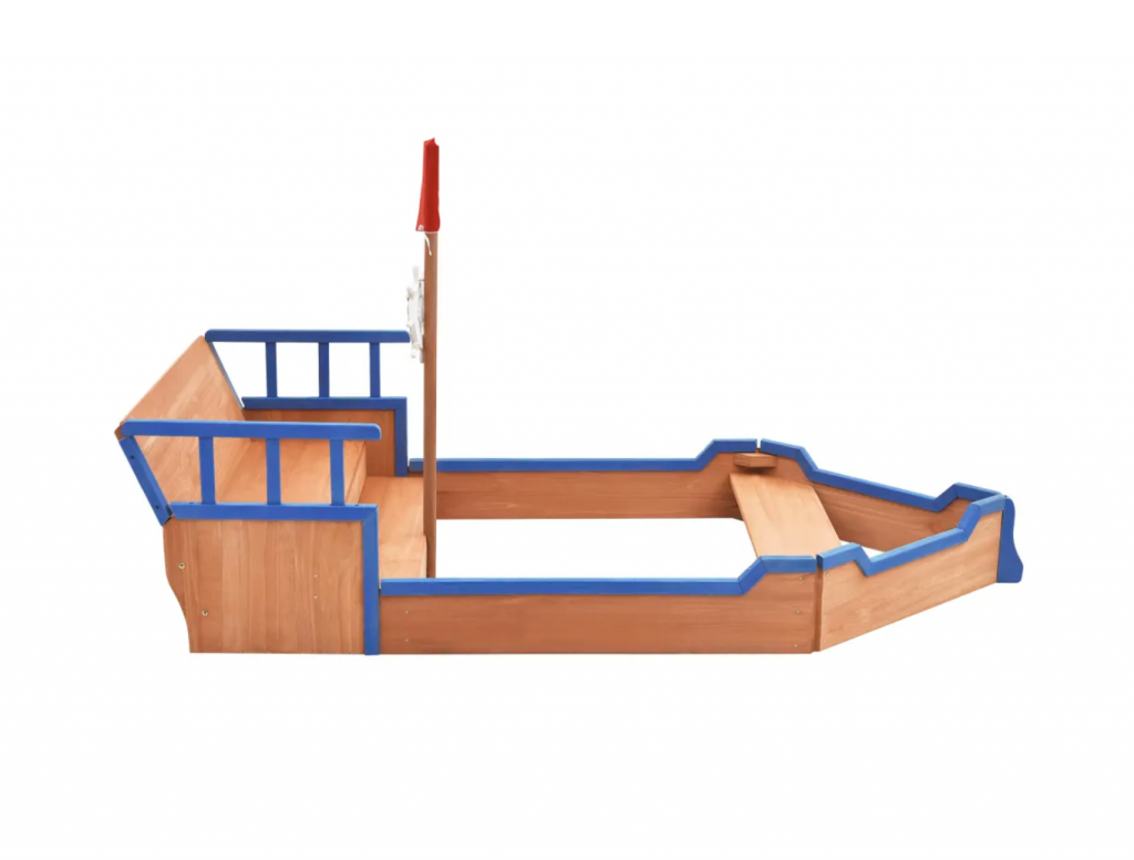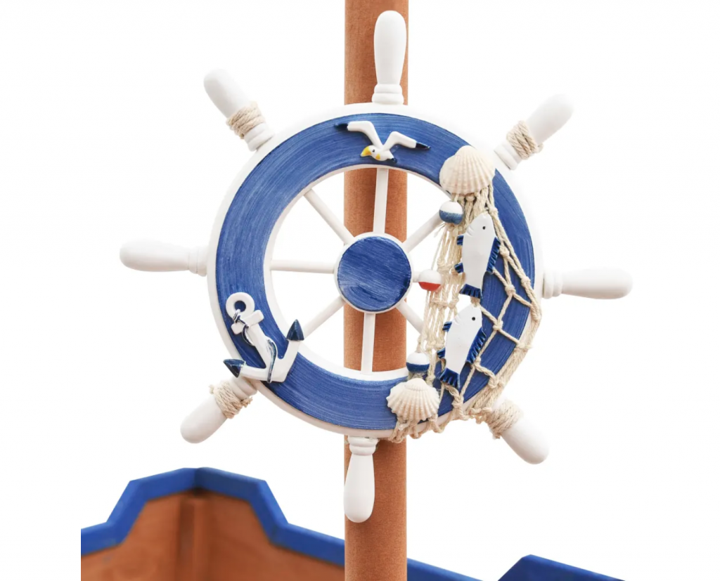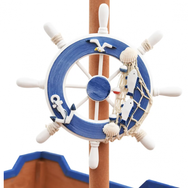 El equipamiento de juego está diseñado con un cajón de arena, una zona de asiento y un lugar secreto para esconderse detrás del respaldo. Está decorado con un mástil y bandera y con un timón, por lo que parece un barco de verdad. Tus pequeños se sentirán como auténticos piratas.
