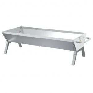 La estructura robusta de esta bandeja de barbacoa se debe a sus patas de acero con recubrimiento en polvo, lo que la hace resistente y estable. Además, cuenta con un amplio espacio para asar diferentes ingredientes y con asas a ambos lados para moverla con facilidad.