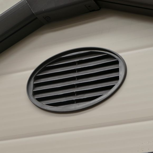 Posee respiraderos en la parte frontal de la caseta para evitar la condensación y dar ventilación al interior. Cuenta con 2 ventanas frontales y 1 lateral que proporcionan iluminación en el interior a la caseta y doble puerta abatible por lo que resulta muy cómodo el acceso al interior.