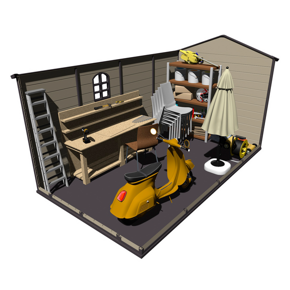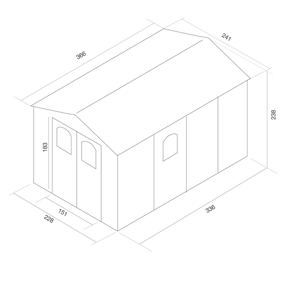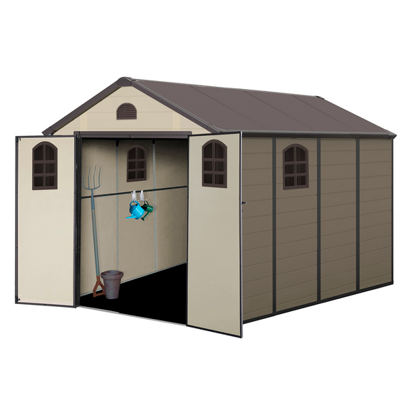 La Caseta de Resina viene con suelo y cuenta con tejado a dos aguas.