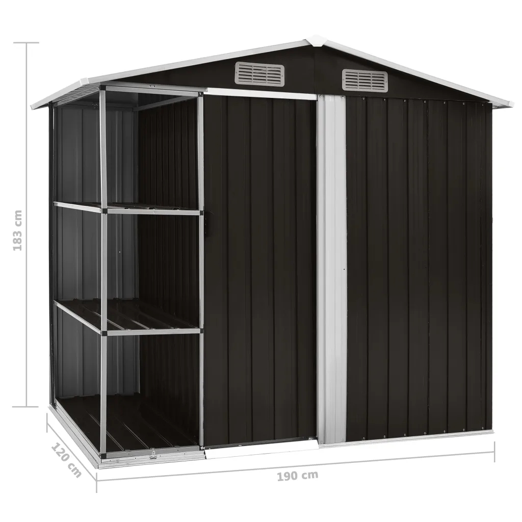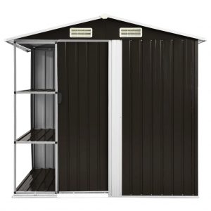 Este cobertizo de almacenamiento está construido con hierro galvanizado por lo que es estable y fácil de mantener. El cobertizo de jardín posee rejillas de ventilación en la parte delantera y trasera, lo que garantiza una excelente ventilación. La puerta corredera con tirador de plástico en la parte delantera facilita poder entrar y salir.
