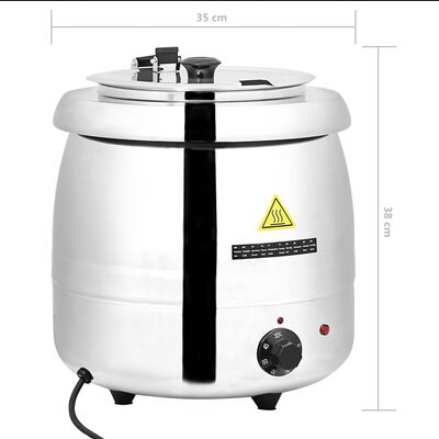 Este hervidor de sopa eléctrico es un aparato ideal para usar en restaurantes, servicios de catering o bufés, ya que mantiene la sopa, salsas, curry o estofados, calientes y listos para servir a temperatura ambiente.