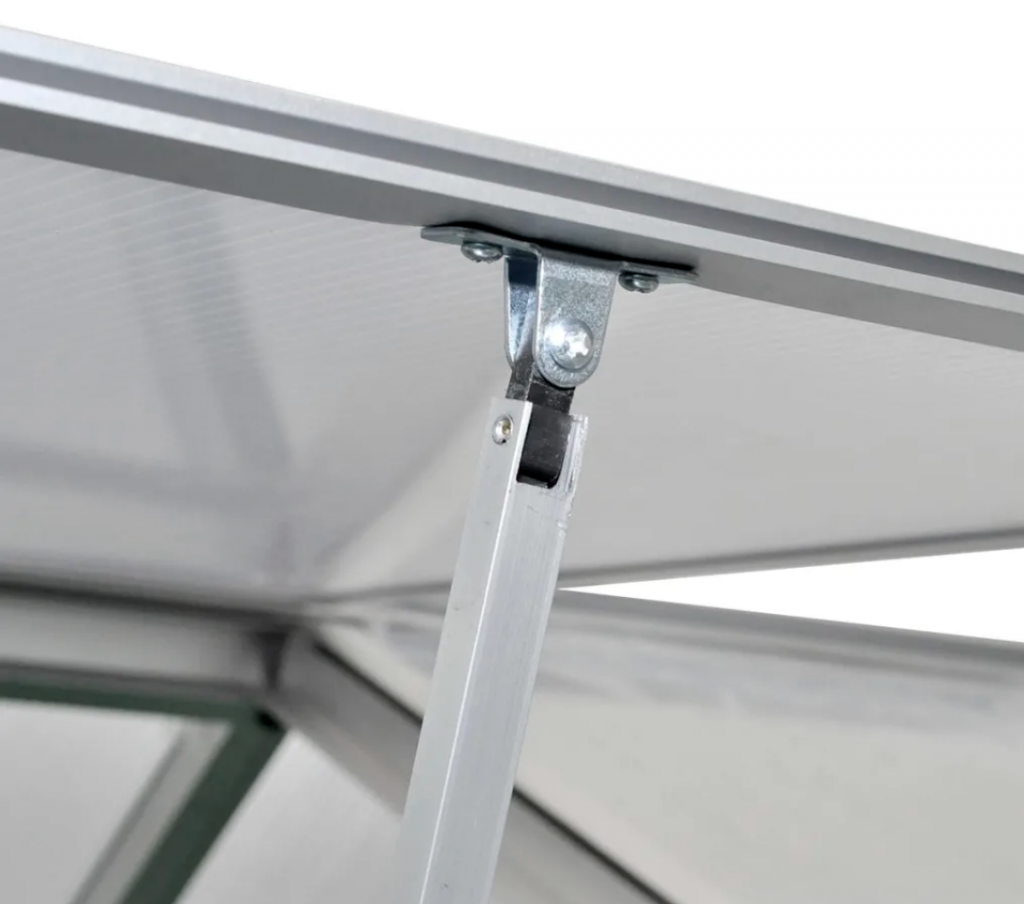 - Material: Estructura de aluminio + paneles de policarbonato
