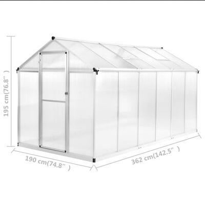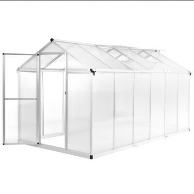 El invernadero tiene una robusta construcción de aluminio que apenas requiere mantenimiento y que ofrece una mayor estabilidad. El sistema de canalones drena el agua de manera efectiva y las dos rejillas de ventilación del techo aseguran una ventilación óptima en los días calurosos. La ventana del techo está diseñada con una función deslizante para garantizar una instalación sencilla, lo que hace que este invernadero sea más resistente que los que tienen clips. No se requiere ninguna base para el sistema de deslizamiento. Es fácil de montar gracias a los accesorios de instalación necesarios, que se incluyen en la entrega.