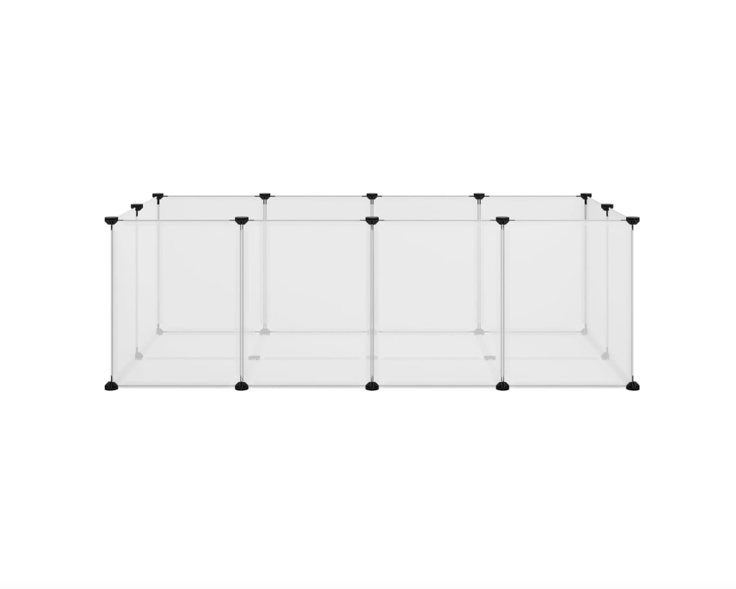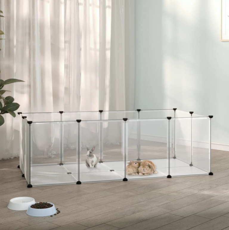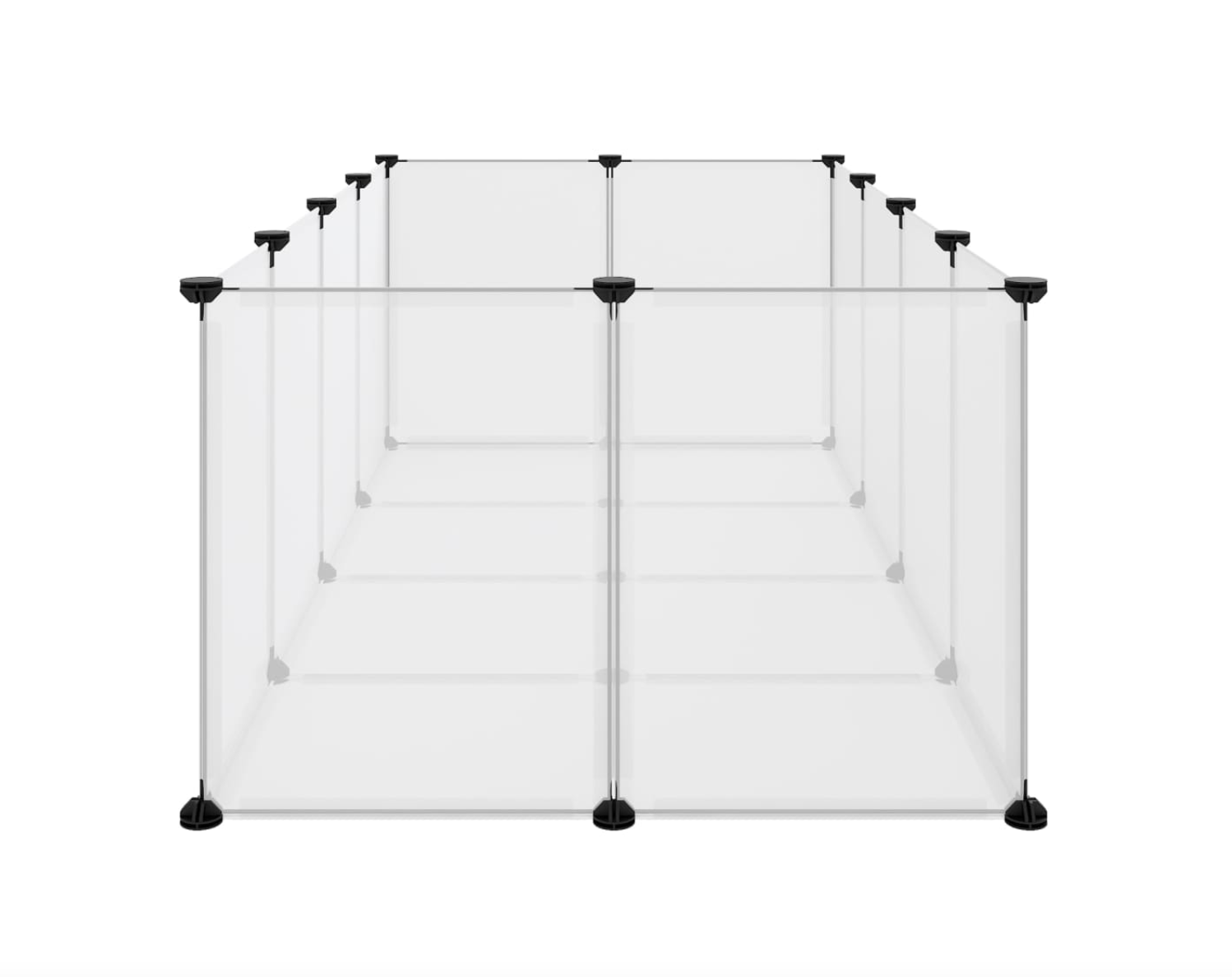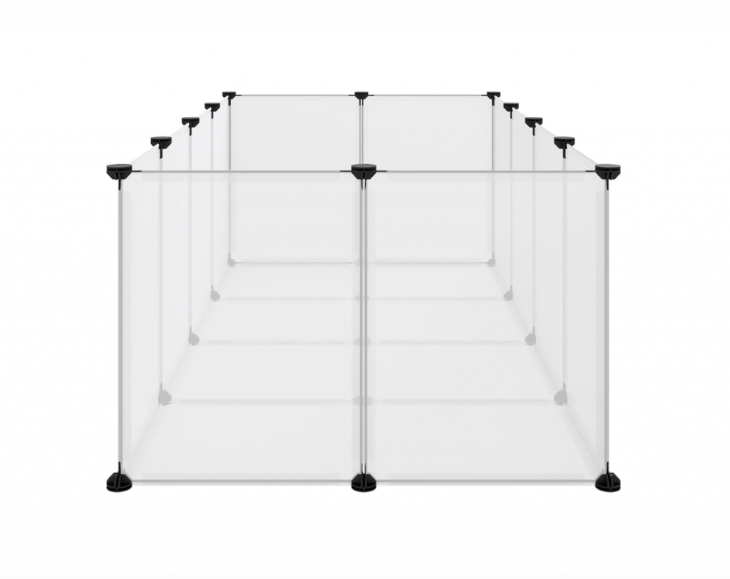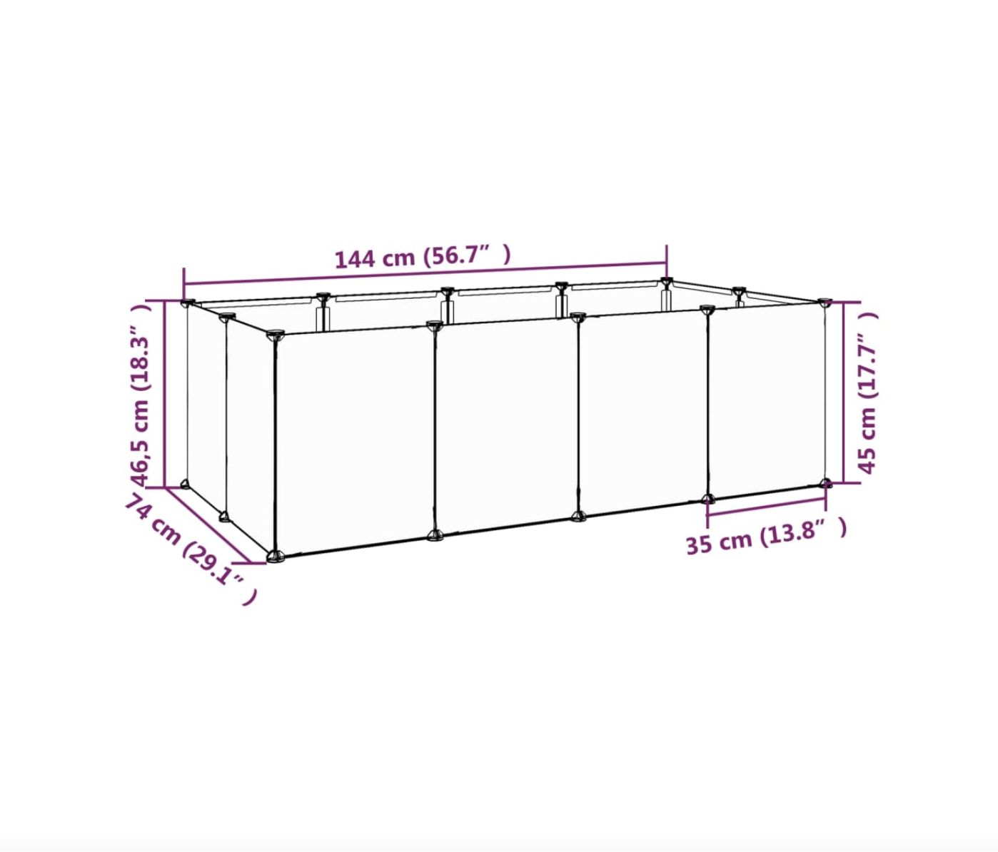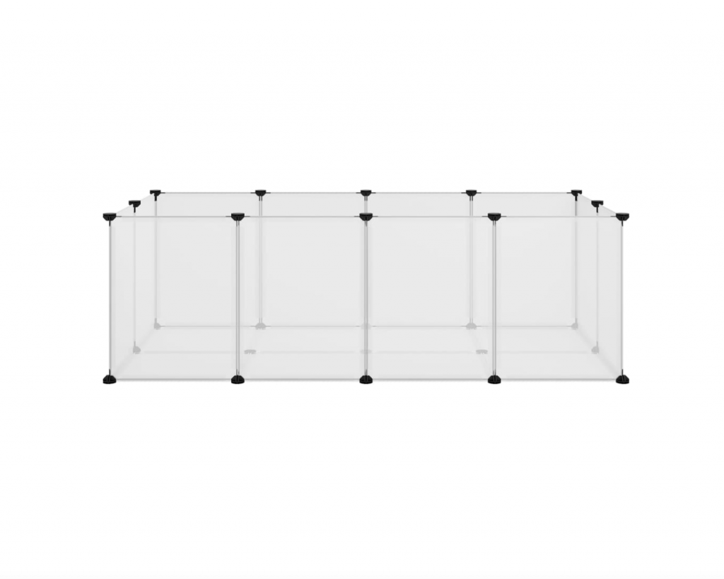 La jaula para mascotas pequeñas es un espacio seguro y amplio para que tus animales de compañía jueguen y descansen. Es fabricada con paneles de plástico PP que son resistentes al agua y fáciles de mantener, y su estructura está hecha de acero para garantizar su solidez y estabilidad. El tamaño de la jaula es ideal para animales pequeños como cachorros, gatitos, conejos, erizos, hámsters, cobayas, etc. Además, es fácil de montar con el martillo de madera incluido y, cuando no está en uso, los paneles se pueden desmontar y apilar para ahorrar espacio.