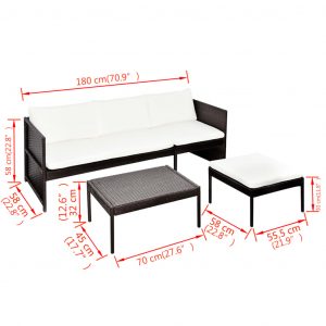 - Tamaño de sofá de tres plazas: 180 x 58 x 58 cm (anchura x profundidad x altura)
