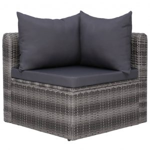 Este set de sofás de ratán sintético consta de 3 sofás de esquina, 2 sofás centrales, 1 mesa de centro, 6 cojines de asiento y 9 de respaldo. Proporciona una amplia zona de descanso y aporta un estilo moderno y un toque de clase a su jardín o patio.