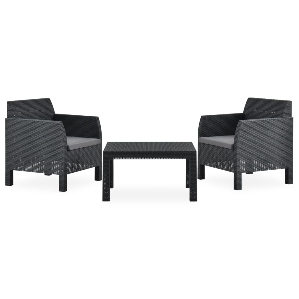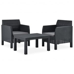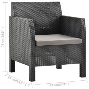 Este set de muebles de jardín tiene una construcción ligera de polipropileno, lo que lo hace fácil de limpiar y adecuado para uso al aire libre. El cojín resistente a los rayos UVA incluido, el respaldo ergonómico y los reposabrazos redondeados brindan comodidad adicional al sentarse. La funda de cojín se puede quitar y lavar. Además, la mesa es ideal para colocar comida y bebida.