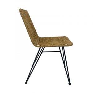 - Construcción resistente: La base metálica de esta silla cuenta con un acabado en pintura epoxi de color negro, lo que proporciona durabilidad y resistencia a la corrosión. El asiento y el respaldo están fabricados con ratán plano sintético de color beige, que ofrece una apariencia natural y al mismo tiempo es resistente a los elementos.
