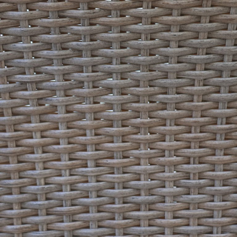 Su estructura metálica aporta solidez al asiento y el ratán sintético le dá un toque fresco gracias a su tono que imita la madera.