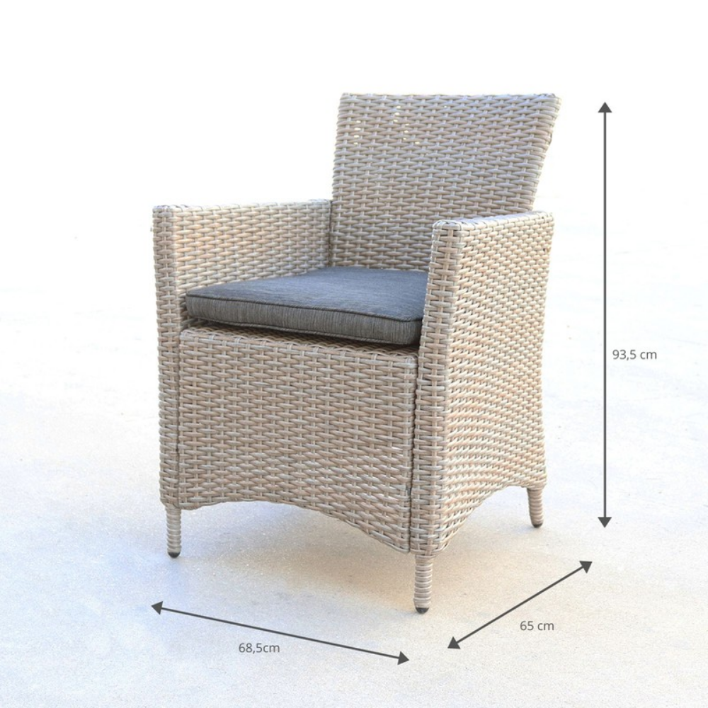 Consiga la comodidad que busca con este sillón de resina imitación ratán y estructura de metal.