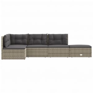 Este moderno conjunto de muebles de exterior, con un diseño elegante y moderno, es una gran opción para relajarse en el jardín.