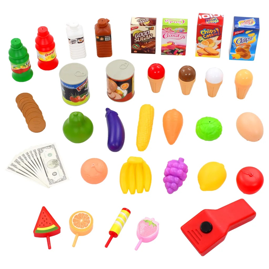 El magnífico juego de supermercado, en colores alegres y con características atractivas, viene completo con accesorios realistas, como el escáner de código de barras, helados, frutas, papas fritas, galletas, dulces, maíz y monedas, etc. Durante el juego, el pequeño ¡tiene que enfrentarse a cosas como la gestión de precios, la coordinación del equipo, la comunicación y mucho más!